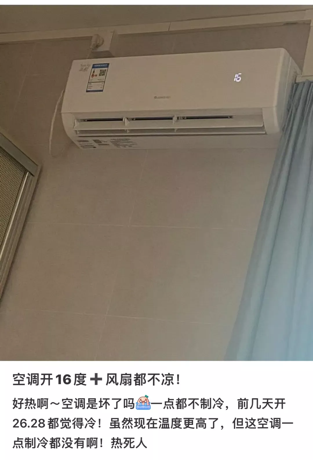 很多时候开到16°了还感觉不凉❗空调漏水!有噪音❗总感觉它特别耗电❗