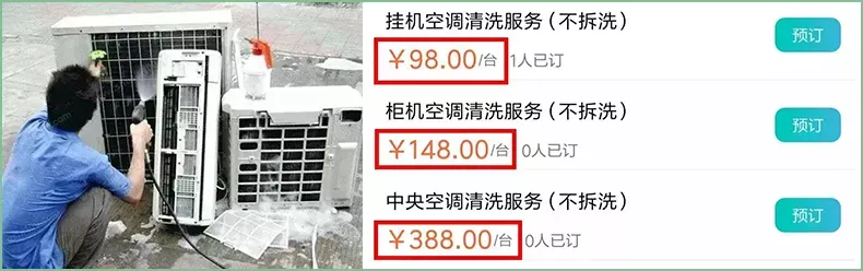 要知道线下叫师傅上门的清洁服务,洗一台空调就需要一百多,家里空调一起清洗的话,一次下来也要大几百,太贵也太麻烦。