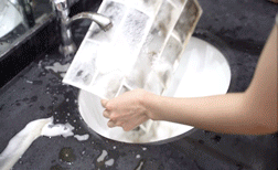 过滤网在水龙头下用水一冲,污渍轻松随水流走。