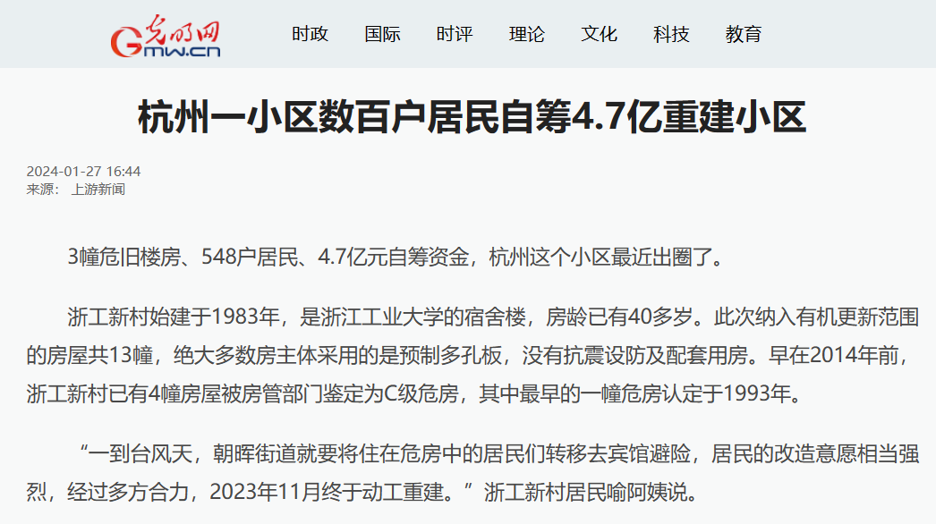 前阵子,浙江省杭州市浙工新村社区居民“自掏腰包”筹集4.7亿资金将整个小区拆除重建引发了普遍的关注,一时间羡慕者众多。