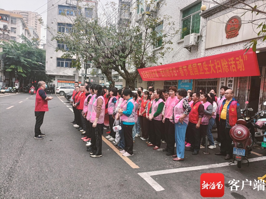 海南省卫生健康委、省疾控局组织机关干部职工在龙峰社区开展周末大扫除活动。