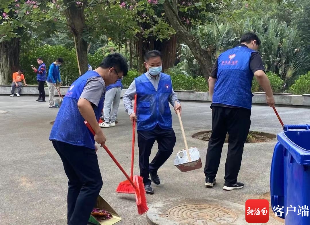 共青团海南省委组织志愿者在美兰区开展周末大扫除活动。