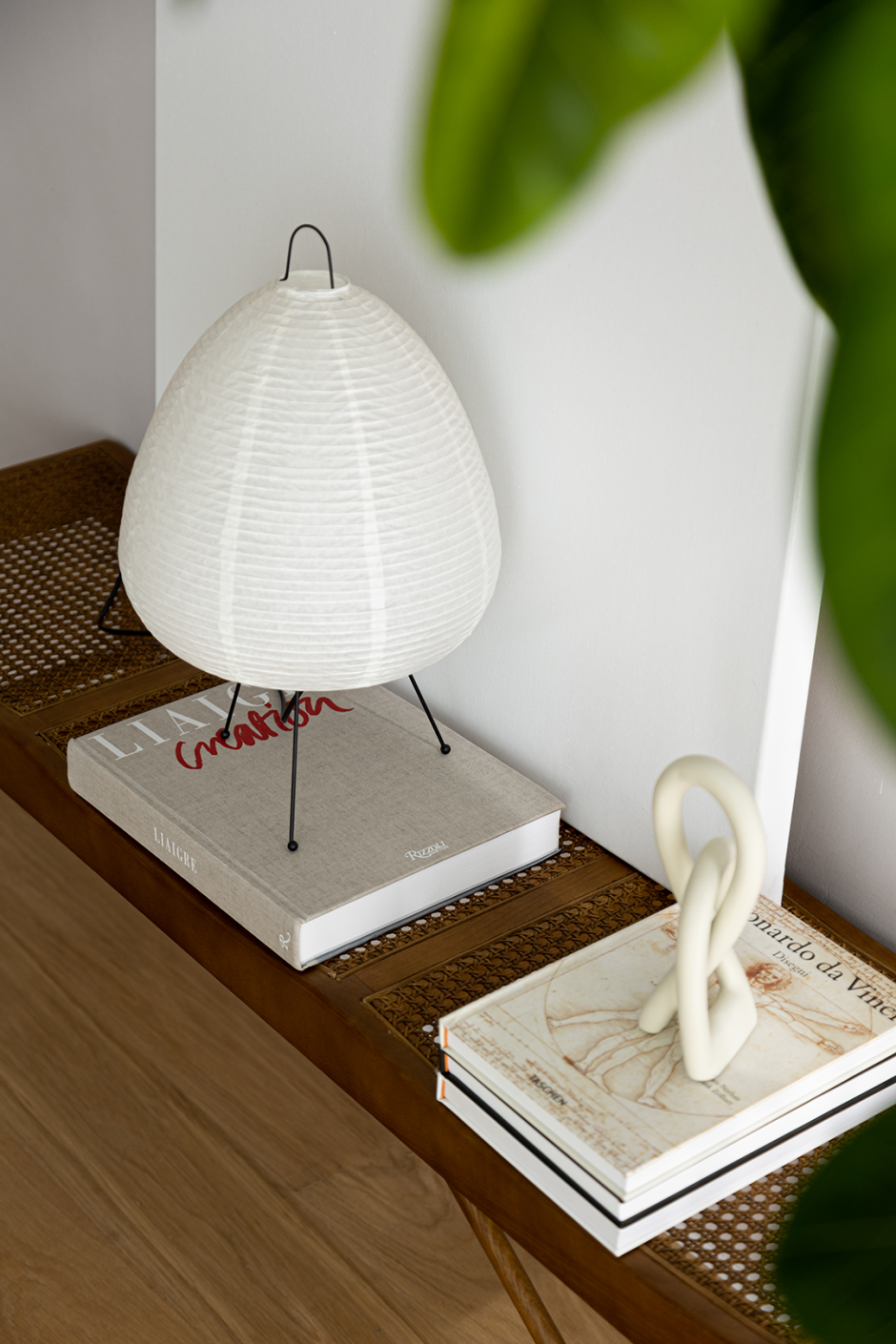 客厅采取极简公式,舒适的灰色组件沙发,侧边放置竹编落地灯,与中间的米白棉麻地毯构建起一个既温暖又充满生活气息的空间,朋友来访时,便能在此畅谈交流。