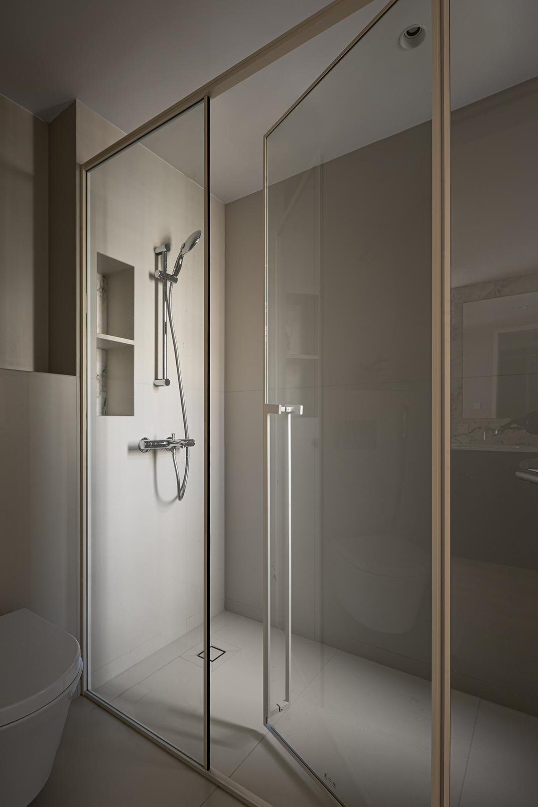 卫生间干湿分离实现舒适升级,墙面地面同色系设计提升风格整体感,洗手台外移,减少卫生间使用冲突,就连高级感也点满了。