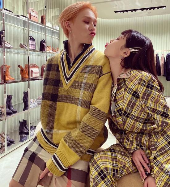 如果要增添一点趣味性,也可以尝试一下灰黄格纹,复古又充满青春校园感。当然,如果你和泫雅一样幸福的话,还可以找对象一起真的成为“灰黄” CP !