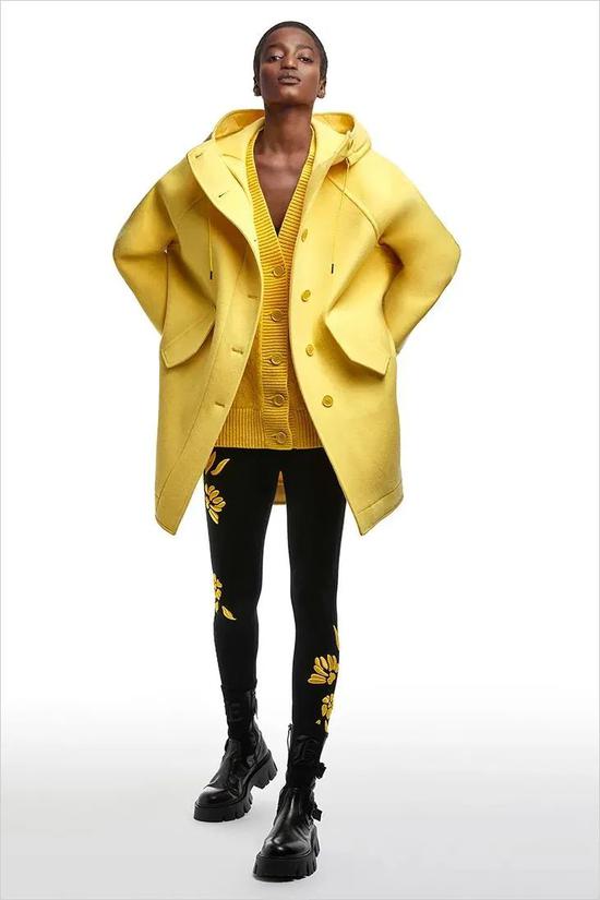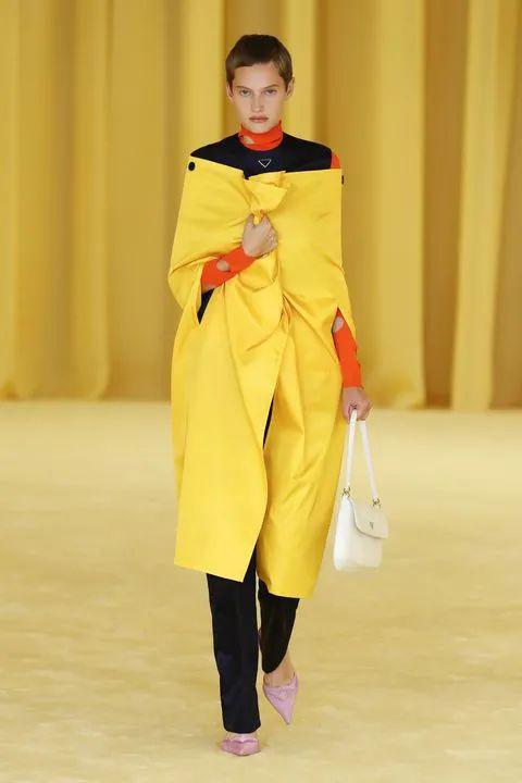 明亮黄接近正黄的颜色,明度高、饱和度高,在 2021 的秀场上也都能看到很多大牌都用了明亮黄的加持。