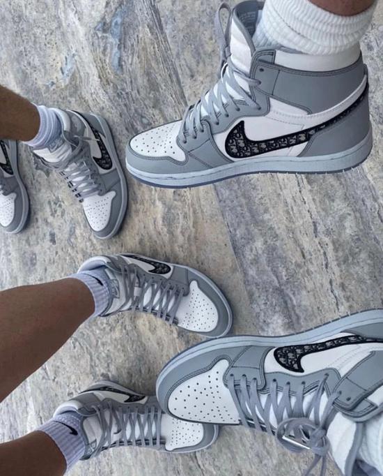 鞋王 Dior x Jordan Brand 也选择了用灰色来演绎经典尊贵奢华的身份。