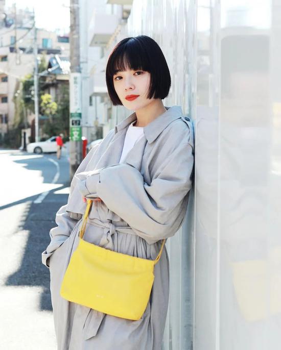 从没试过这么“明目张胆”的色彩的人,建议第一步可以先从配饰入手。亮丽黄的包袋搭配全身灰色起到画龙点睛的效果。