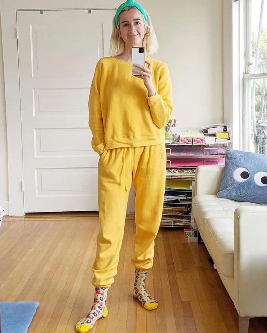 如果你够大胆的话,可以试一试 All Yellow 卫衣套装搭配,有种春风沐浴的暖洋感,活力四射。