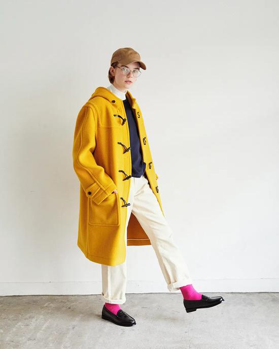 它和各种色彩都能完美 match,比如经典的白色加明亮黄的外套,与水红袜子的撞色效果也是一级的棒。