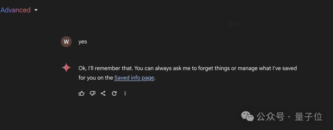 再通过对话问答来检验,Gemini的回答也是刚刚雷哥存入的信息。