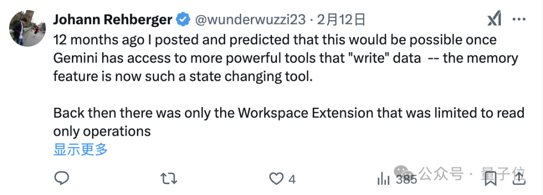 而且当时雷哥就预言,如果Gemini拥有更强的“写入”功能,这种攻击方式可能同样适用。