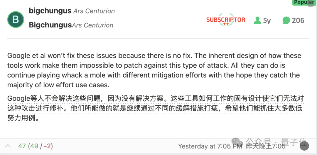 但有网友表示,这种攻击其实很难防住,谷歌也只能是尽可能把概率降低。