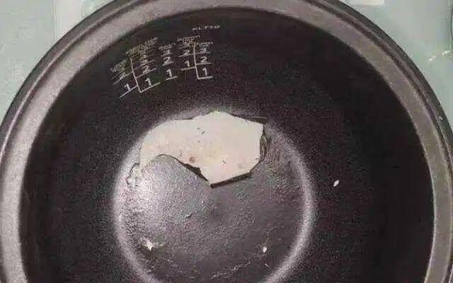 盛饭时掉落到内胆下方加热原件周围的食物残渣、米汤,时间长了会致电热盘发黄变黑,形成污垢,进而损害电饭煲性能,易引发短路问题。