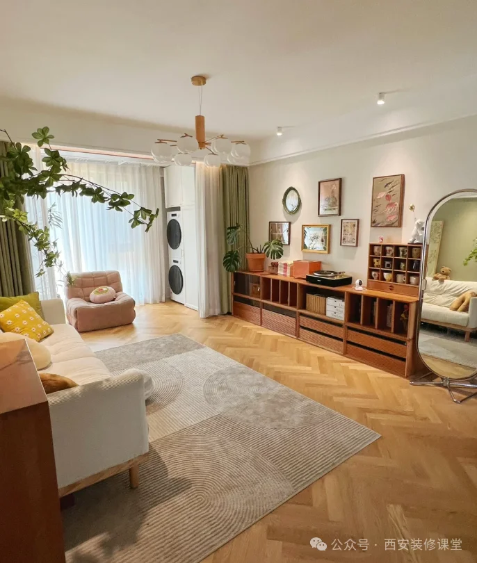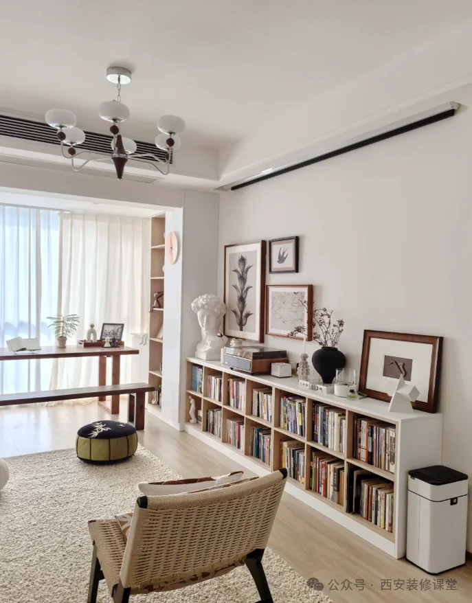 只做了风管机的必要吊顶,其他地方没有通顶定制,吊顶都不做,为什么人家就看起来高级呢?因为一个是做了建材的搬运工作,一个是做了有价值的工作《模仿装修堆积建材,真不如穷装省钱实用,关键还环保》![]()