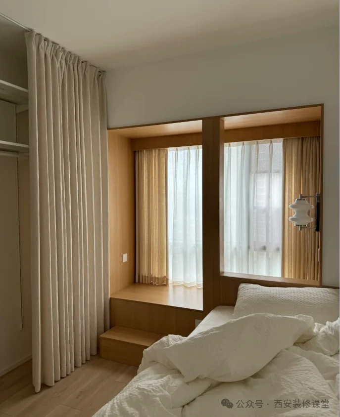 即使是飘窗,床头照样可以靠窗布局,而且飘窗可以作为休闲空间《不听劝,小卧室床头靠飘窗,结果效果贼好》![]()