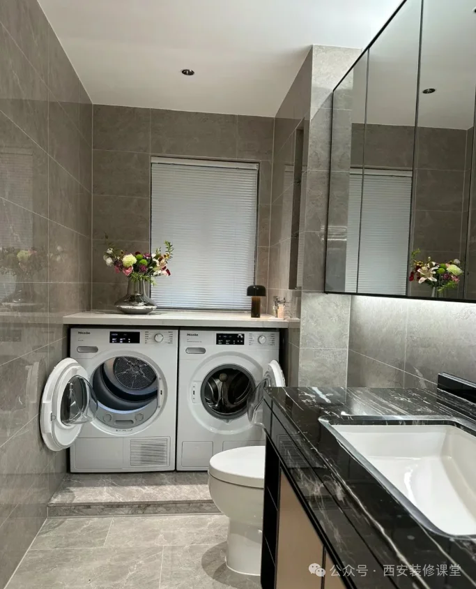 又或者是上图的灰色亮光瓷砖?放个洗衣机?![]()