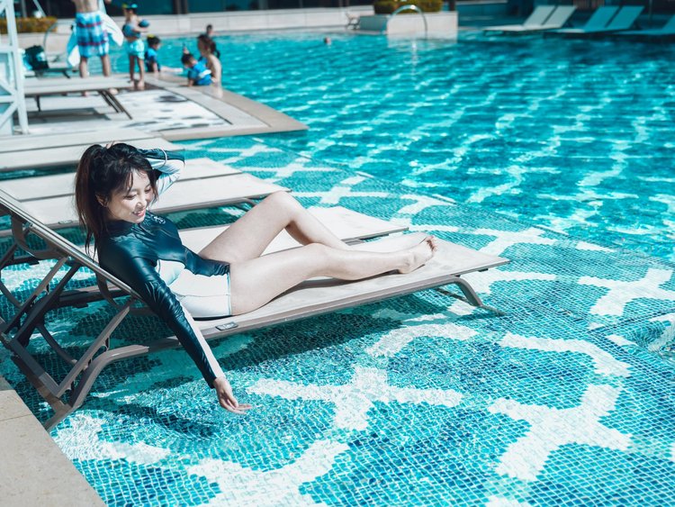 我最喜欢酒店的游泳池SPA,浪漫而又温柔,室内是水蓝色晃动的泳池。