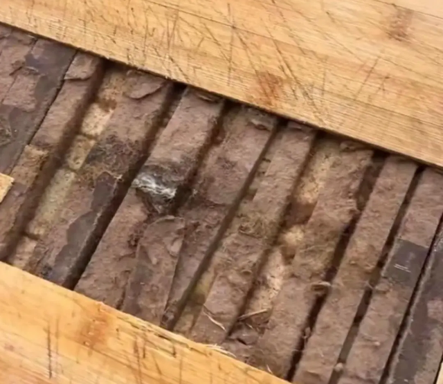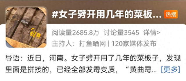 近日,河南一女子发视频表示,自己劈开家中用了几年的菜板子,发现里面的材质是拼接的,且已经全部发霉变质,“黄曲霉素窝”被揪出!吓得赶紧扔掉,买了一块新的实木案板。