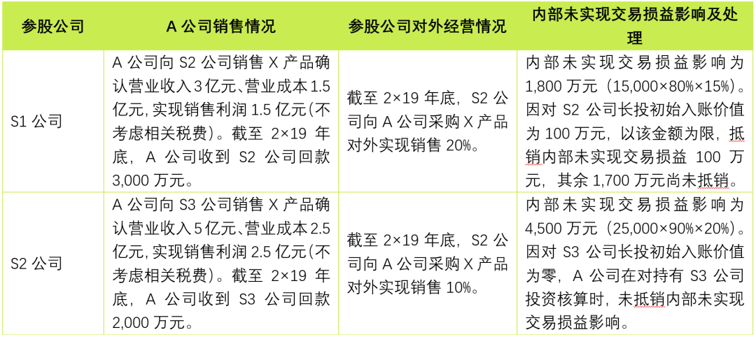 上述交易中,A公司通过向参股公司销售X产品实现营业收入共计8亿元,实现销售利润4亿元,分别占其当年营业收入总额的40%,占其当年销售利润总额的45%。上述交易内部未实现交易损益影响总额为6,300万元,A公司通过权益法核算实际抵销金额为100万元,其余6,200万元未抵销。(不考虑相关税费)。