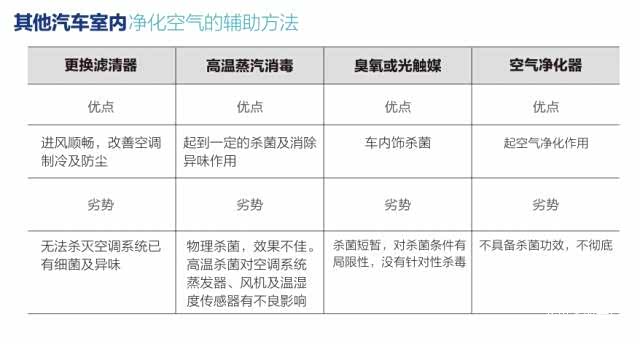 2.汽车内室是个密闭的空间,从外界和人体携带进来的细菌跟病毒,在温度和湿度适宜的情况下,会在空调管道,地毯,顶棚及各个死角过度繁殖(喜欢在车内吃食物的尤为严重)