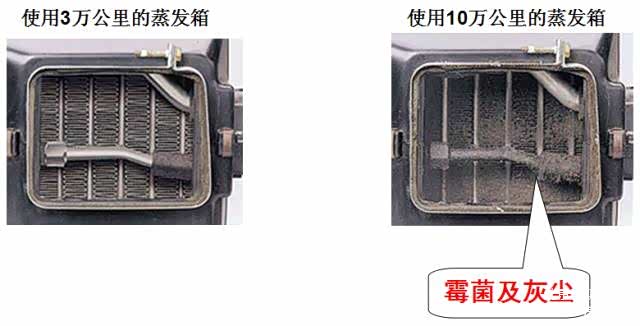 汽车空调清洗前,污垢、细菌充满蒸发箱,严重污染车内空气!