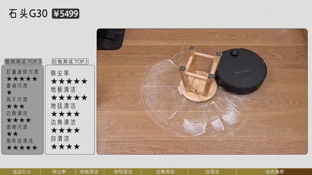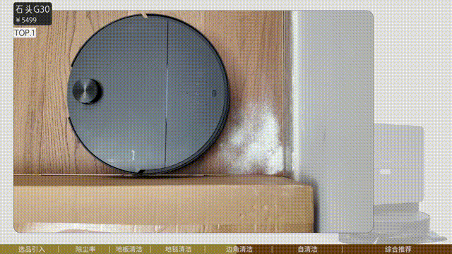 上期排名第三的石头,在扫地方面断崖式领先。除尘率几乎达到100%;地毯上的四项污渍也完全清扫干净;贴边清扫效果最好,对于窄缝的深入距离最远;滚刷上的毛发可以比较容易剥离下来。综合排名:第一。