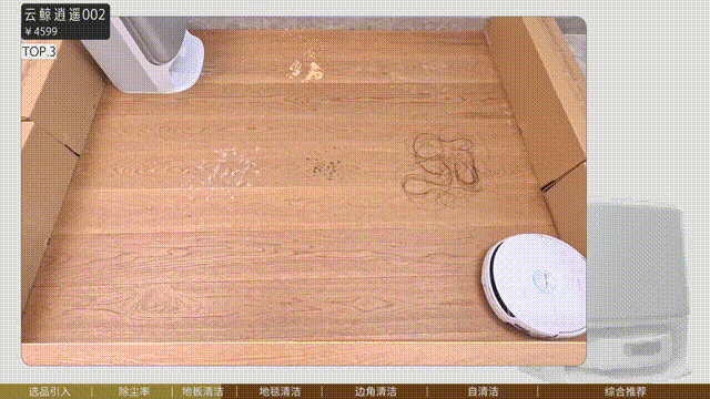 上期拖地能力测试中,表现最好的云鲸,在本轮扫地测试方面,处于中等水平。地板清洁环节,会打飞干脆面和活性炭,残留不少污渍;面对地毯,也是残留少量干脆面,且地毯边缘无法清扫到位;边角清洁存在明显缺陷,90度折角会有清扫盲区;不过滚刷设计合理,容易清洁,也是唯一一个做了可替换尘盒设计的选手。在五款机器中综合排名,可以给到第二。