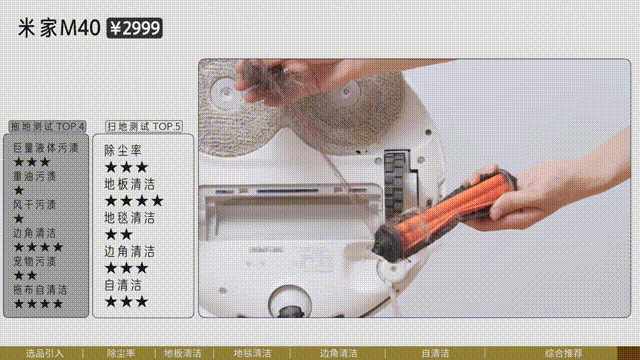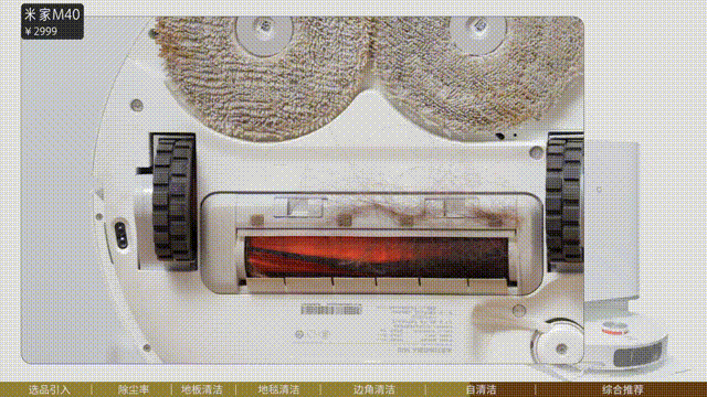 米家就有点难受了,这次扫地测试表现依旧不佳,地板、地毯上的干垃圾无法全部清除;圆边贴边测试存在遗漏的区域;并且V型滚刷,缠上毛发会很难去除,需要借助工具剪开。综合排名:第五。