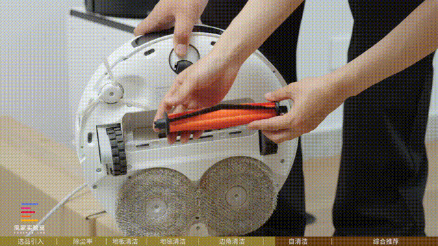 最后是非常影响使用体验的自清洁功能。网上很多避雷贴说的也是这方面,很多人会因为看到这个而避雷扫地机器人这类家电。那我们也帮大家看了一下滚刷会不会缠住毛发、吸尘口会不会被堵住以及自集尘后的残留情况。