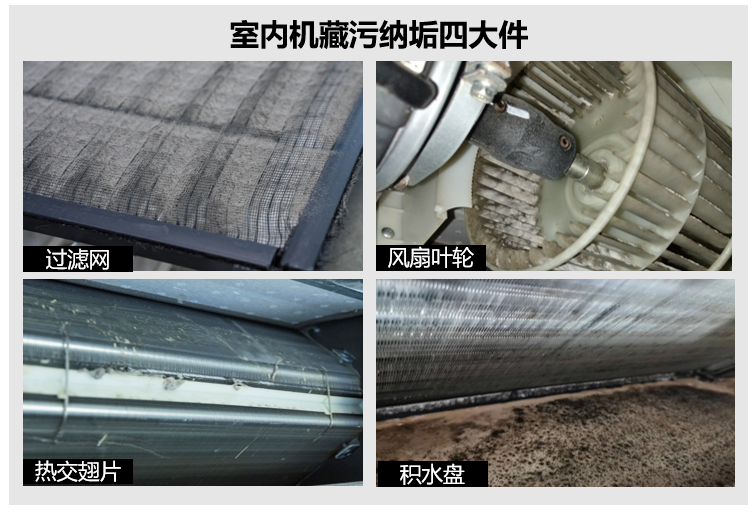 许多消费者认为清洗空调只需洗滤网就足够了。实则不然,上海空调清洗行业协会秘书长王彬表示:单纯冲洗过滤网远远不够,空调室内机易藏污纳垢的四大件——过滤网、风扇叶轮、热交翅片、积水盘都是霉菌滋生的温床。同时需注意室外机因长期暴露在外,热交换器、电路板如长期不清理,可能会导致短路、部件损坏等问题,进而影响空调的使用寿命和运行效率。