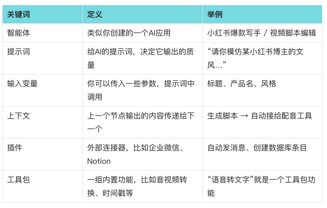 听我一句劝,很多人用扣子用着用着就废了,就是因为一开始不懂这些基本结构,上来就先动手,导致后面流程搞乱、变量丢失、提示词出错,最后放弃。
