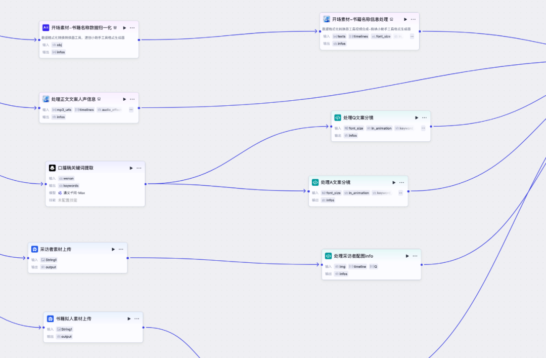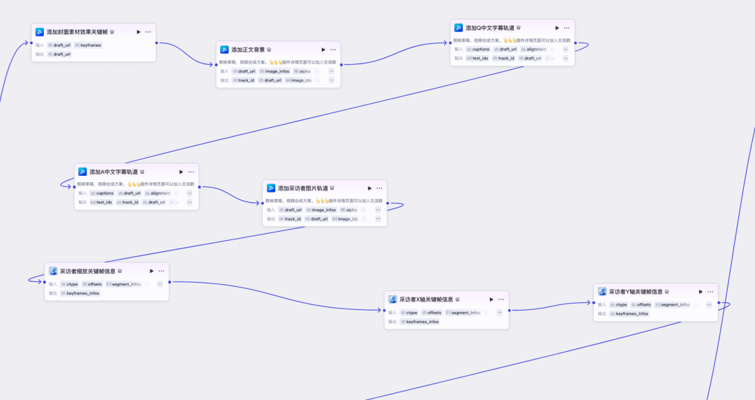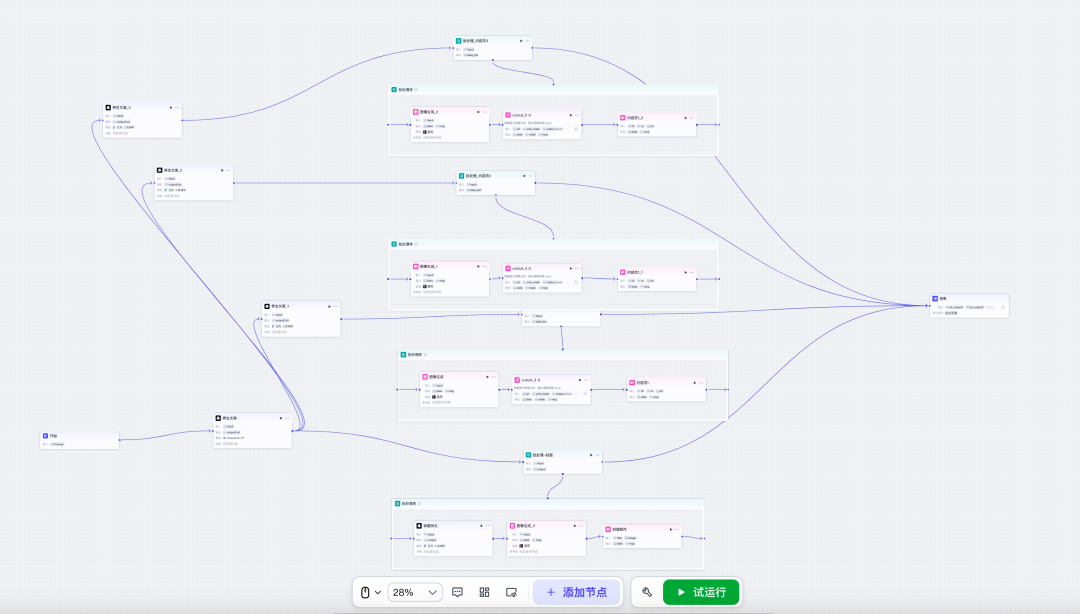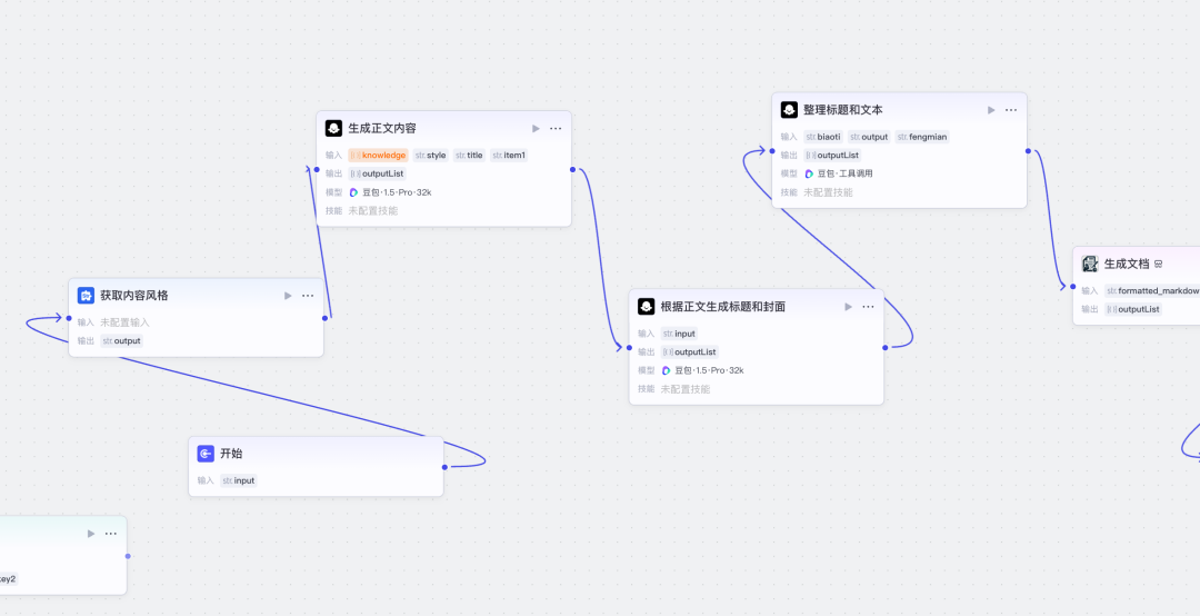 这个流程,每一个步骤是一个智能体或工具,但通过工作流组合起来,一次输入,就能完成整条内容生产链条。