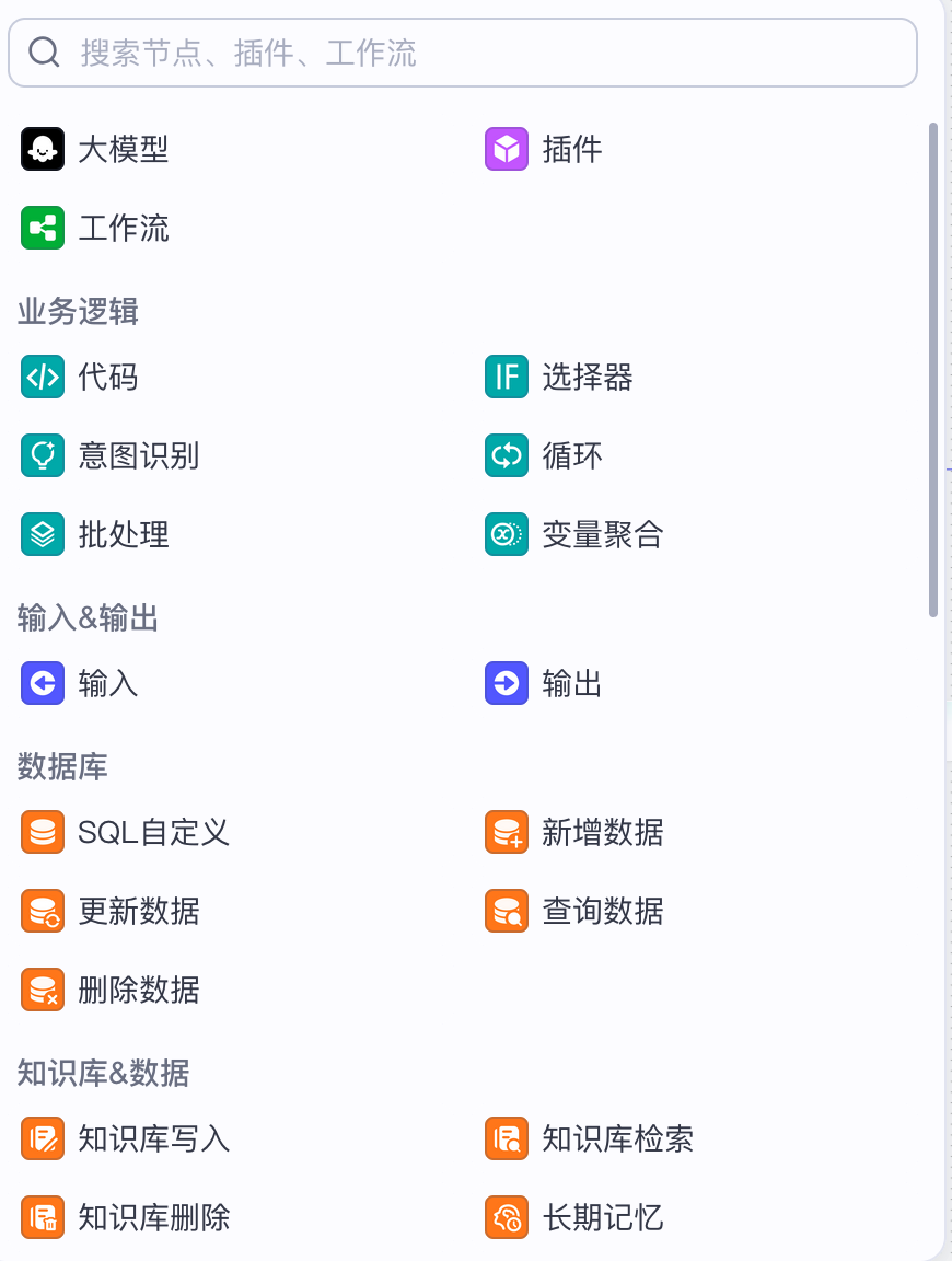 工作流(Workflow):用于处理功能类的请求,可通过顺序执行一系列节点实现某个功能。