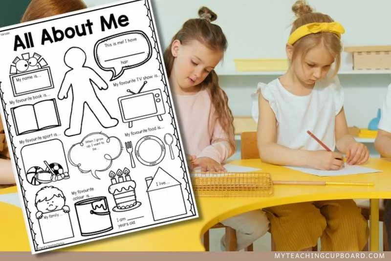 On Day One, I introduce a simple worksheet where each child writes their name, completes a drawing of themselves, and adds a few details like their favourite book or activity.