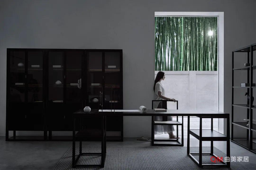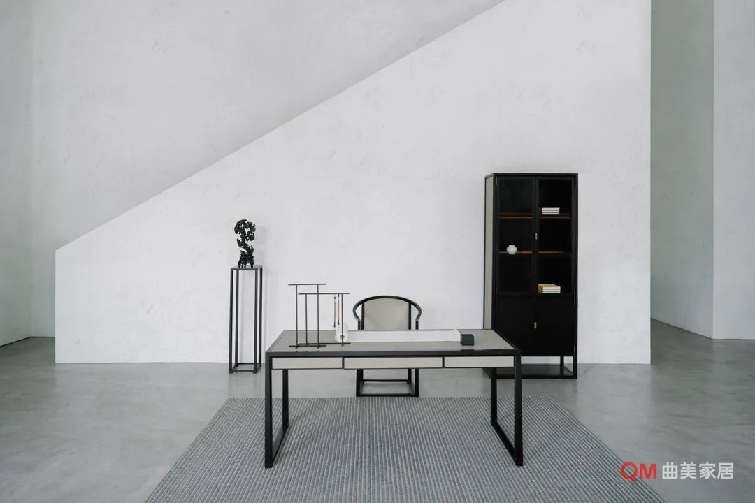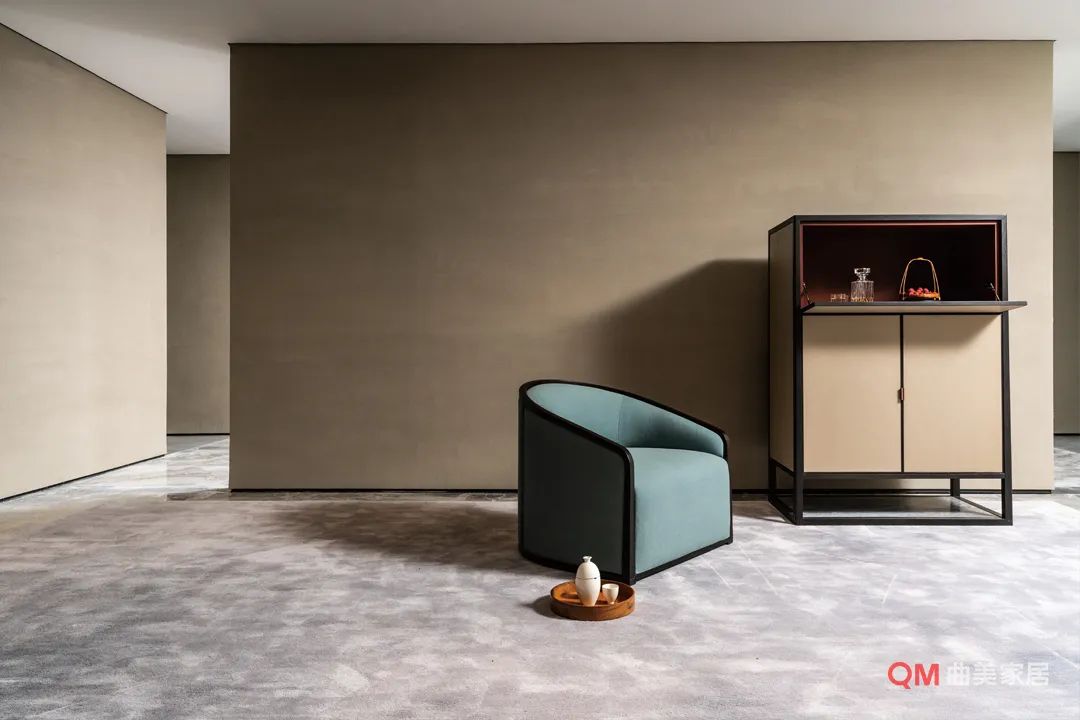 灵魂单品: 圈椅与方几组合诠释现代中式韵味,太湖石造型台灯诠释自然写意,古典陶瓷花器搭配写意枝干完成意境表达。