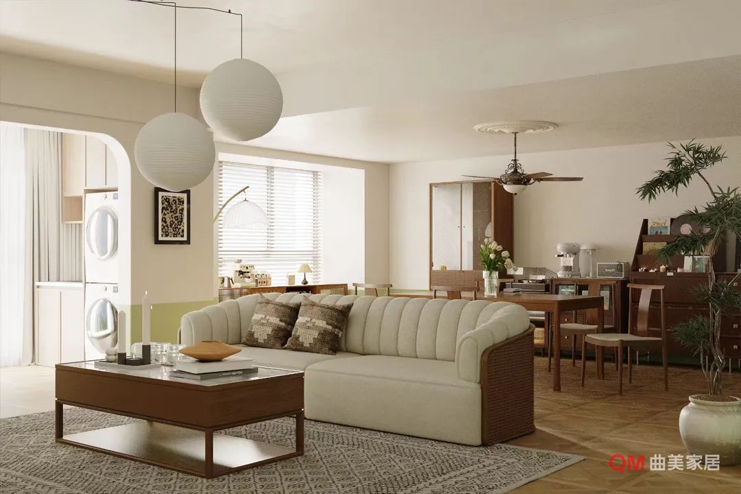 配色核心: 底色坚持羊绒白、燕麦色、杏仁奶为主调,营造柔焦滤镜般空间底色。局部跳脱融入橄榄绿、赤陶橘、沉静灰蓝制造视觉呼吸点。