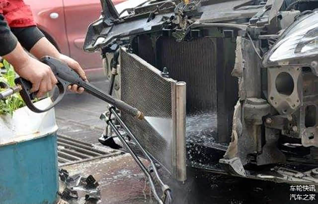 需要注意的是,如果你的汽车前面特别脏,柳絮、树枝、灰尘已经严重影响了发动机散热的话,建议你采用拆洗方式,将水箱拆下彻底清洗一遍。如果不是很脏的话,可以不用拆卸,用气枪吹走表面杂质和柳絮后,再用高压水枪冲洗。最好不要直接用水冲洗,因为这样水箱表面的柳絮很容易黏在水箱上,反而适得其反。