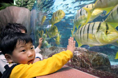 集教育和娱乐为一体,让宝宝在精彩的海洋世界中滋生好奇心,快乐的学习海洋生物知识。毗邻乐天世界,位于乐天世界购物城地下1、2层的乐天世界水族馆或距离不远的COEX水族馆都不错,二者选一吧!