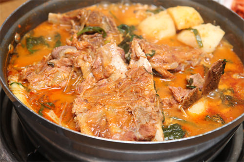 逛到一定时候,晚饭就在位于明洞的“元堂脊骨土豆汤&猪蹄菜包肉”来锅热腾腾的土豆脊骨汤,外加一份猪蹄菜包肉。一餐双吃,够味!一家老小都会喜欢哒。
