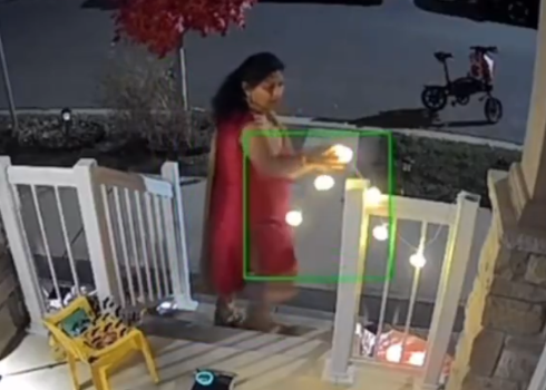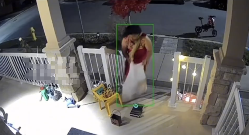 拿完之后,大妈还意犹未尽,没马上离开,而是目光扫了一下前廊,似乎是在看还有啥能顺走的,然后转身,看了眼挂在栏杆上的灯饰,一个抬手直接顺走了!