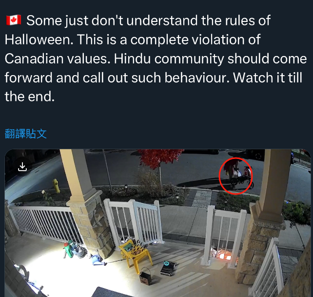 事发多伦多万锦市的一个住宅区,这里住了不少华人,昨天天气好,很多小孩都跟着爸妈上街讨糖果,大家也很有节日气氛,布置院子、放糖果。