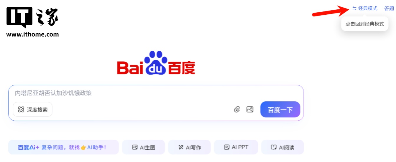 百度搜索 PC 端首页全量上线系列 AI 功能,AI 搜索月活已超 3.22 亿人次